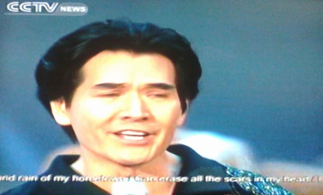 11.45pm – Had a half-nap on the sofa for ten minutes, now there’s an ugly guy in a red shirt singing a sad Chinese opera song. The audience look very sombre. Surely a quarter to midnight isn’t the time for misery. Can’t hear a thing over the fireworks now.