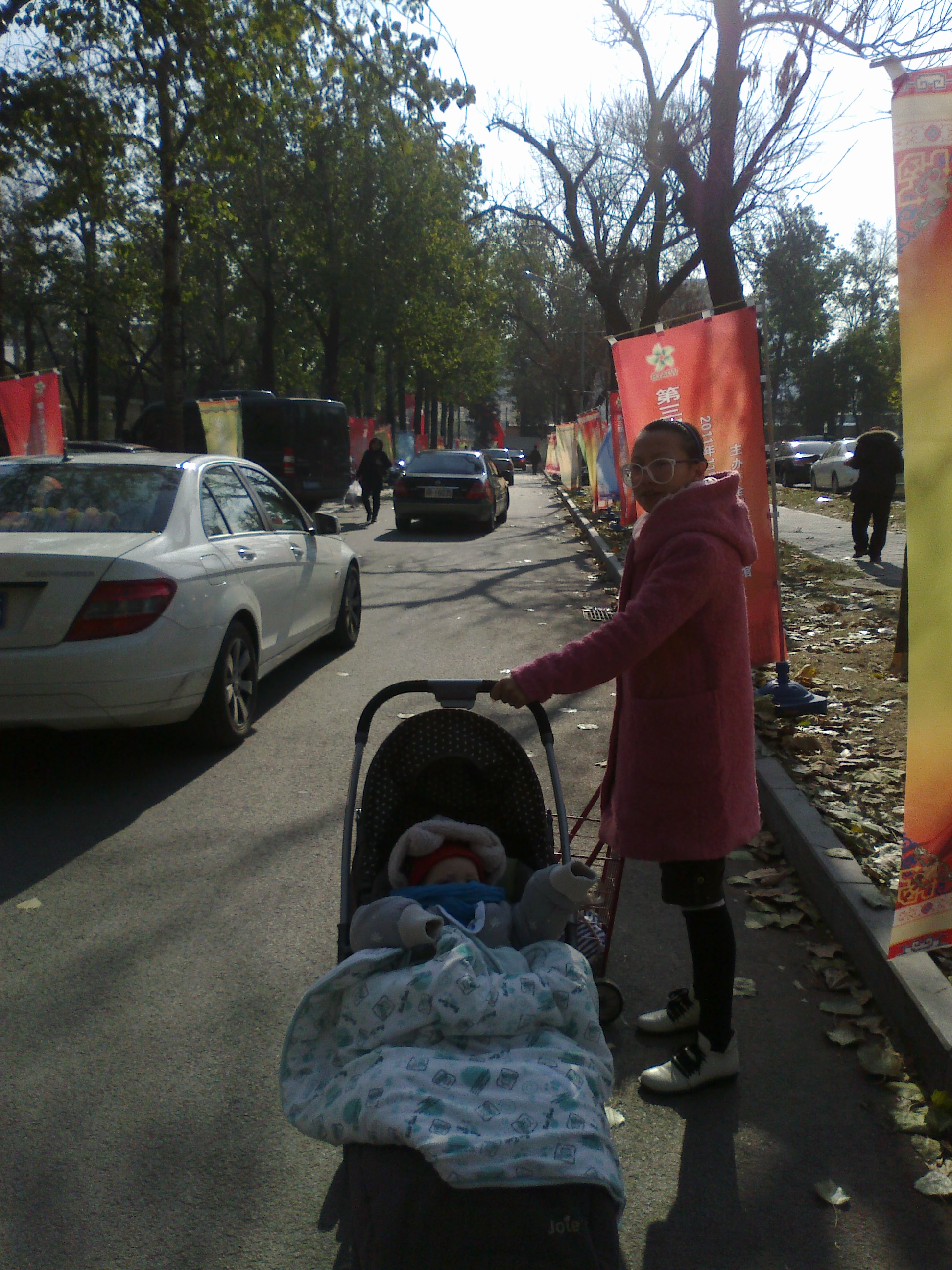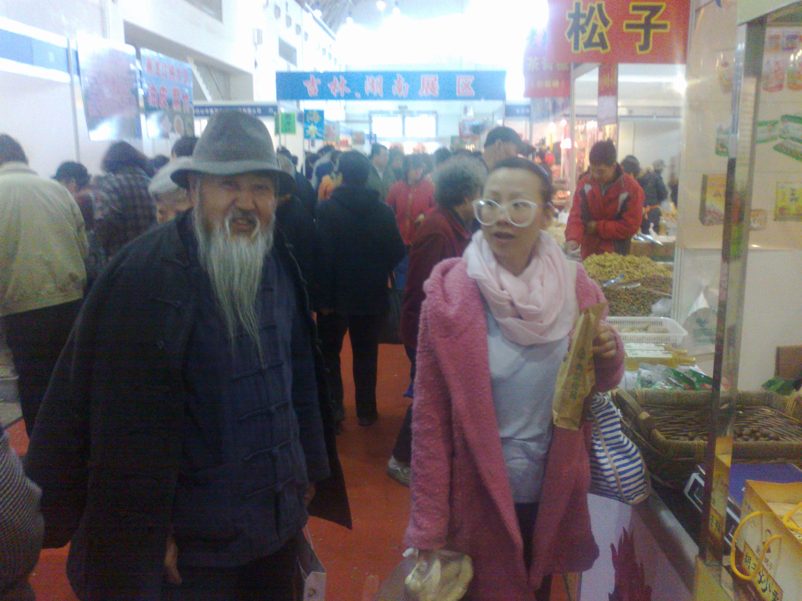 We take a bus followed by a couple of tube trains. Line ten has an announcer with a drawling Midwestern accent – “Agricultural Exhibition Cennurr.” We’ve arrived! Beijing’s subway system was not designed with prams in mind, and it is with no small amount of effort that we carry everything up the steps and emerge into the unseasonably clear, freezing Beijing morning. We pass through the immense iron gates and, in typical Chinese style, find our way down an unsignposted side path to the exhibition cennurr proper.