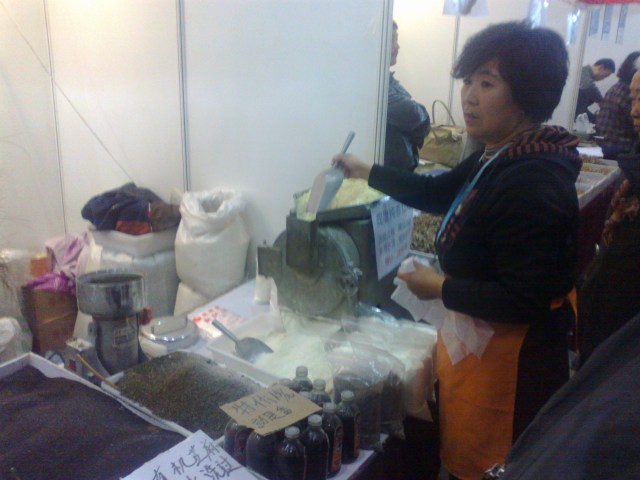 Another thing I’d never seen before I came to China is people actually making oil. This isn’t unique to specialist food markets – there are two separate stalls making bottles of oil in our local market. For some reason people are suspicious of commercial oil around these parts. Hand-made oil is just not reasonably priced, though, so we’ll just have to keep taking the risk.