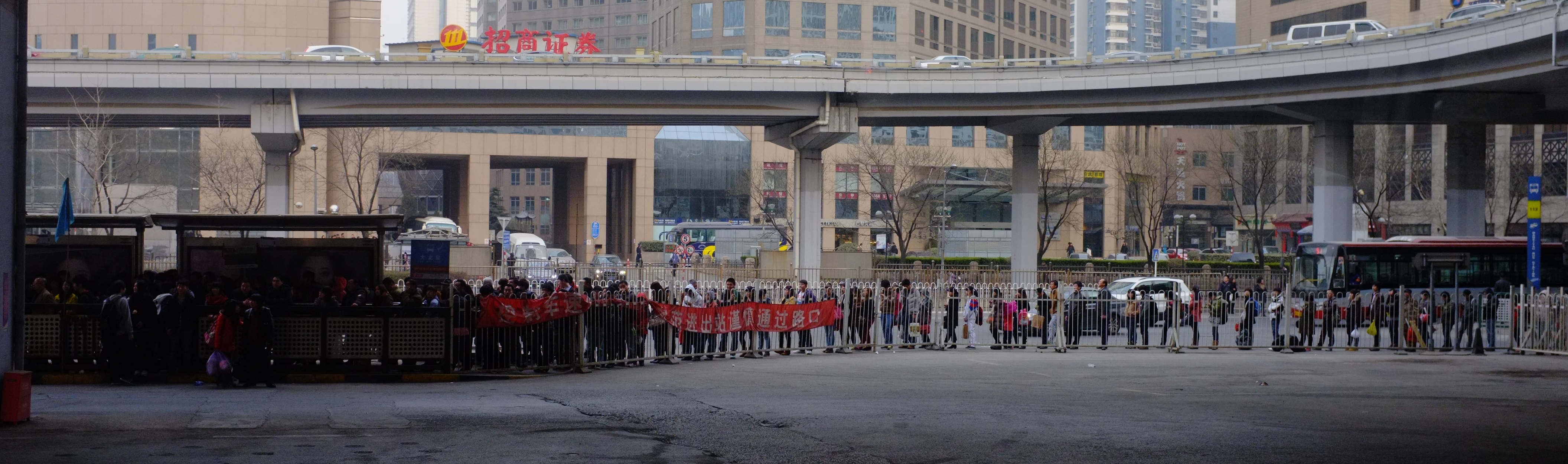 When I started taking the bus, the problem was the queue. Chinese people, as has been noted a great deal elsewhere, don’t queue, and the scrum at the door of the #669 every evening did nothing to dispel this idea. As an English person I have an ingrained conviction that queueing is the cornerstone of civilization, and taking part in a fight every day in order to get home, well, my faith in China was starting to be shaken. That was until I discovered the secret – some bus stops have a clearly demarcated fence and somebody to police it. Take a look at this little beauty –